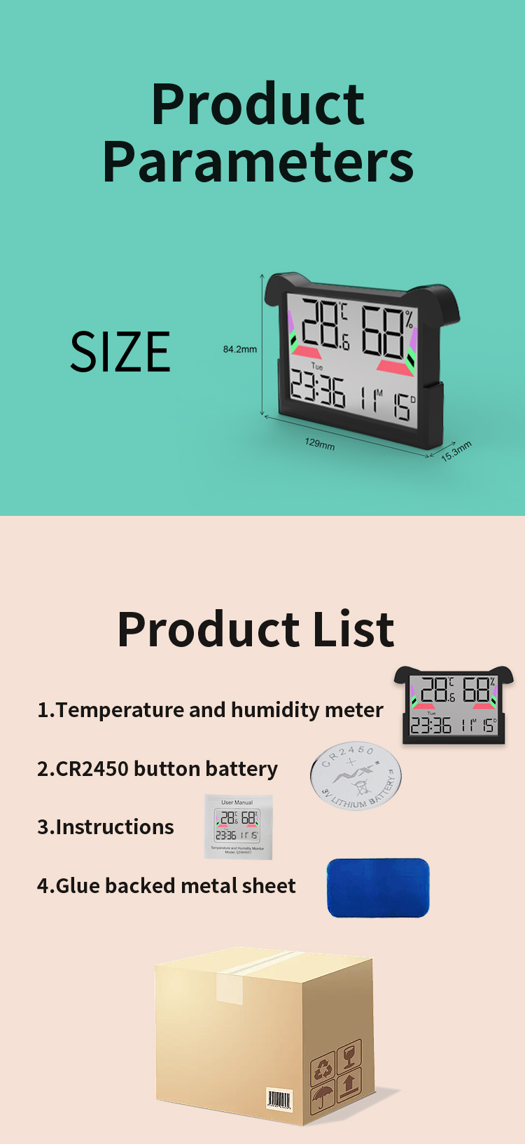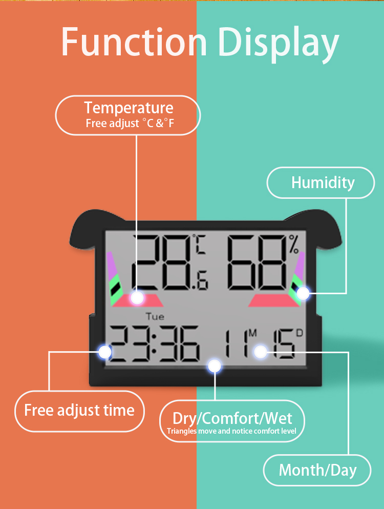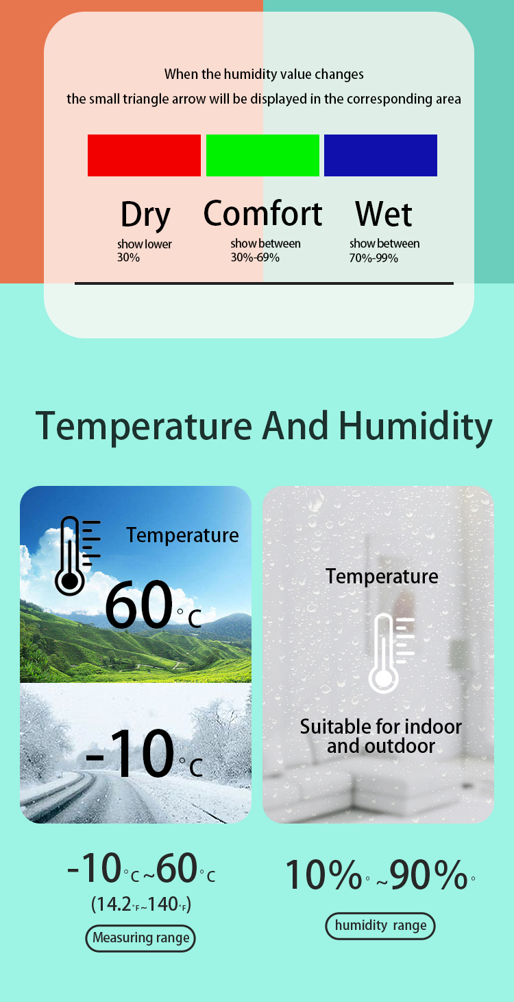 2 | Humidity display accuracy ±5% RH,refresh rate: 10 seconds |