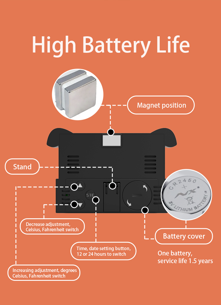 7 | Battery compartment(3V CR 2450 Button Battery*1) ,battery life about 18 months |