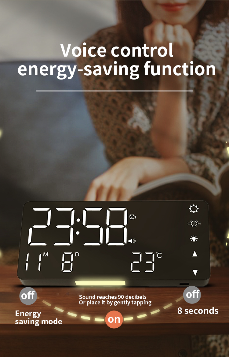 | 1 | When the power is turned on, the product is in energy-saving mode,ambient sound reaches 90 decibels or is gently tapped when placed on the table top |