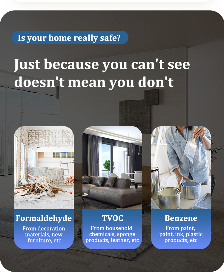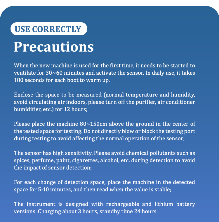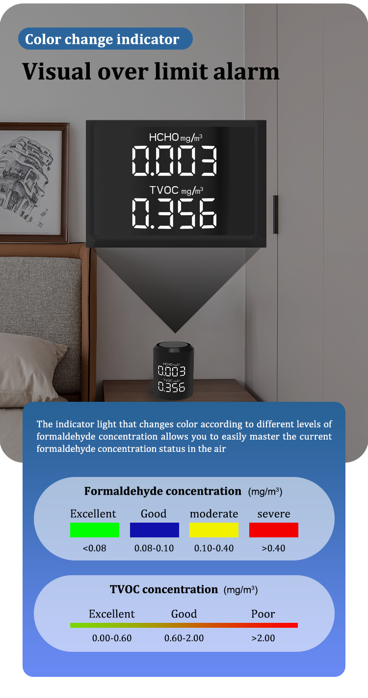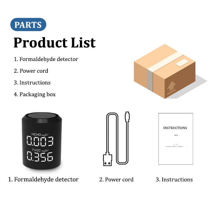1Detection items: formaldehyde /air quality/TVOC(mg/m3)/HCHO(mg/m3)
